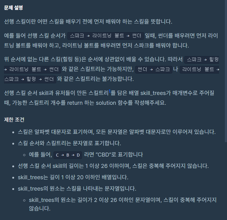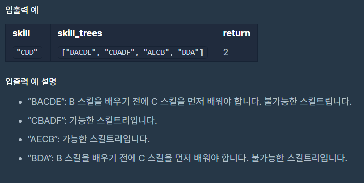//find를 실행하였을 때 선행 스킬순서의 첫번째 인덱스를 반환할 때만